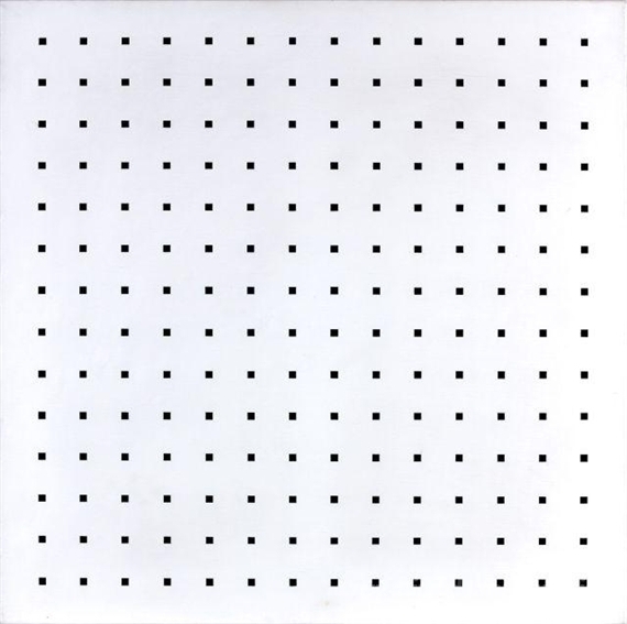 Ti offriamo una riproduzione artigianale su tela dell'opera famosa 'Rythme du MILLIMETRO' di Aurelie Nemours, dal Museo delle Riproduzioni.