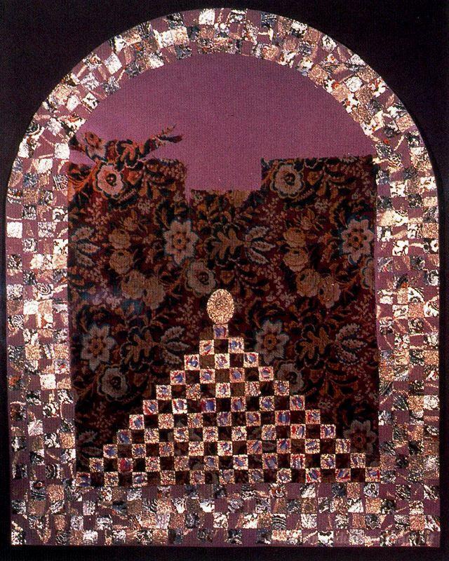 Ti offriamo una riproduzione artigianale su tela dell'opera famosa 'Santuario per l'Uovo' di Miriam Schapiro, dal Museo delle Riproduzioni.