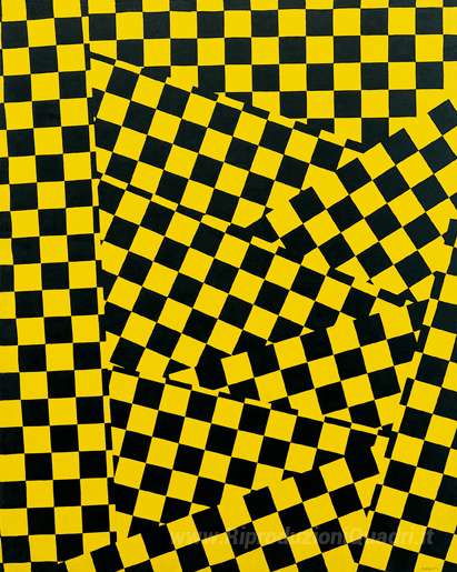 Ti offriamo una riproduzione artigianale su tela dell'opera famosa 'Scacchi' di Mario Nigro, dal Museo delle Riproduzioni.