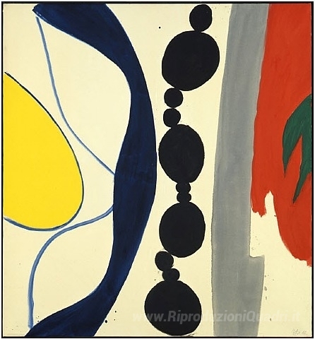 Ti offriamo una riproduzione artigianale su tela dell'opera famosa 'Schwarze Kette Grün zu Rot' di Ernst Wilhelm Nay, dal Museo delle Riproduzioni.