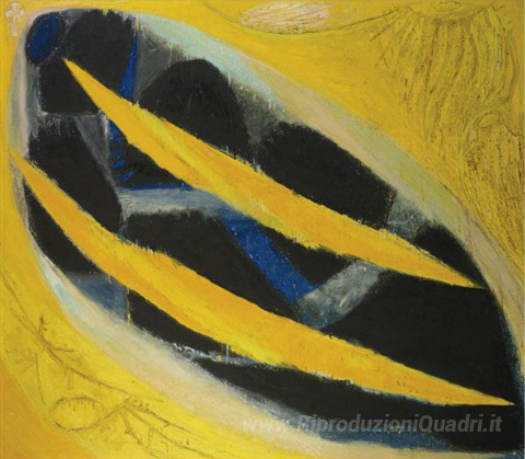 Ti offriamo una riproduzione artigianale su tela dell'opera famosa 'Scuro Presenza III, Giallo' di Frank Lobdell, dal Museo delle Riproduzioni.