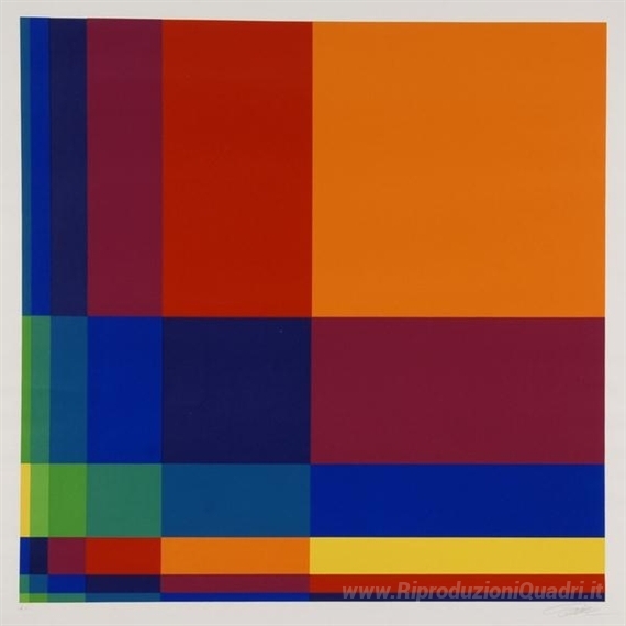 Ti offriamo una riproduzione artigianale su tela dell'opera famosa 'Sechs vertikale Systematische Farbreihen mit orangem Quadrat rec' di Richard Paul Lohse, dal Museo delle Riproduzioni.