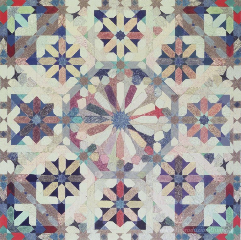 Ti offriamo una riproduzione artigianale su tela dell'opera famosa 'Sedici-Point Star Pattern II' di Joyce Kozloff, dal Museo delle Riproduzioni.
