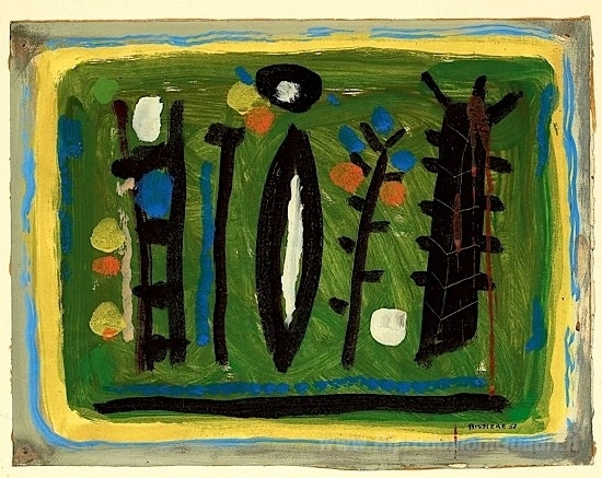 Ti offriamo una riproduzione artigianale su tela dell'opera famosa 'Senza titolo' di Roger Bissière, dal Museo delle Riproduzioni.