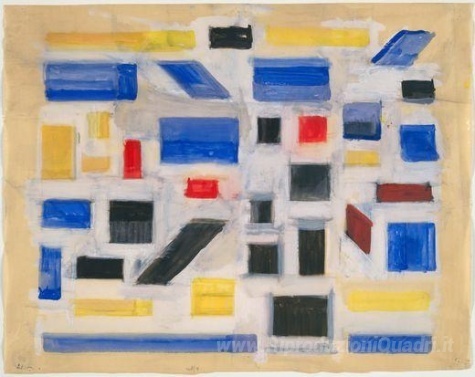 Ti offriamo una riproduzione artigianale su tela dell'opera famosa 'Senza titolo' di Bart van der Leck, dal Museo delle Riproduzioni.