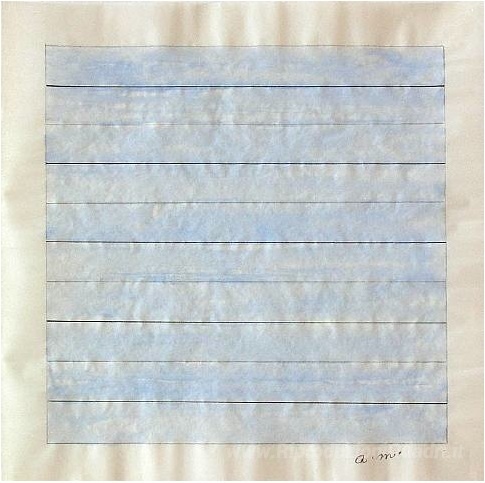 Ti offriamo una riproduzione artigianale su tela dell'opera famosa 'Senza titolo' di Agnes Martin, dal Museo delle Riproduzioni.