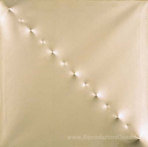 Ti offriamo una riproduzione artigianale su tela dell'opera famosa 'Senza titolo' di Enrico Castellani, dal Museo delle Riproduzioni.
