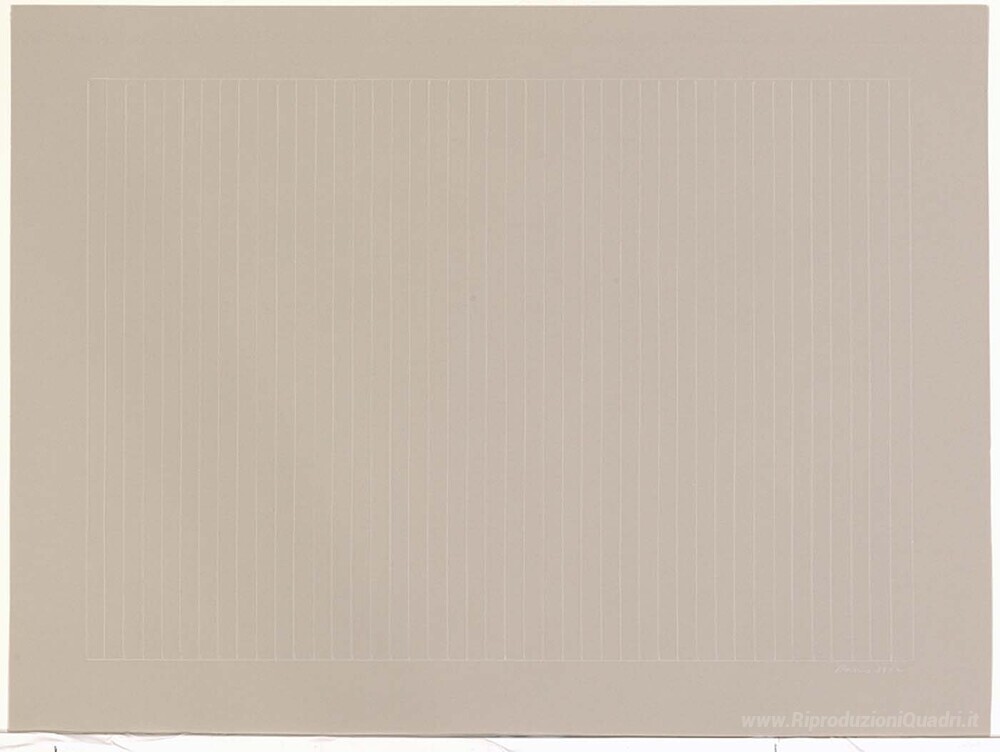 Ti offriamo una riproduzione artigianale su tela dell'opera famosa 'Senza titolo' di Gene Davis, dal Museo delle Riproduzioni.