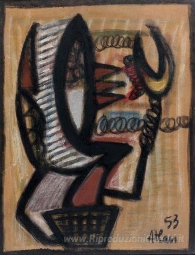Ti offriamo una riproduzione artigianale su tela dell'opera famosa 'Senza titolo' di Jean-Michel Atlan, dal Museo delle Riproduzioni.