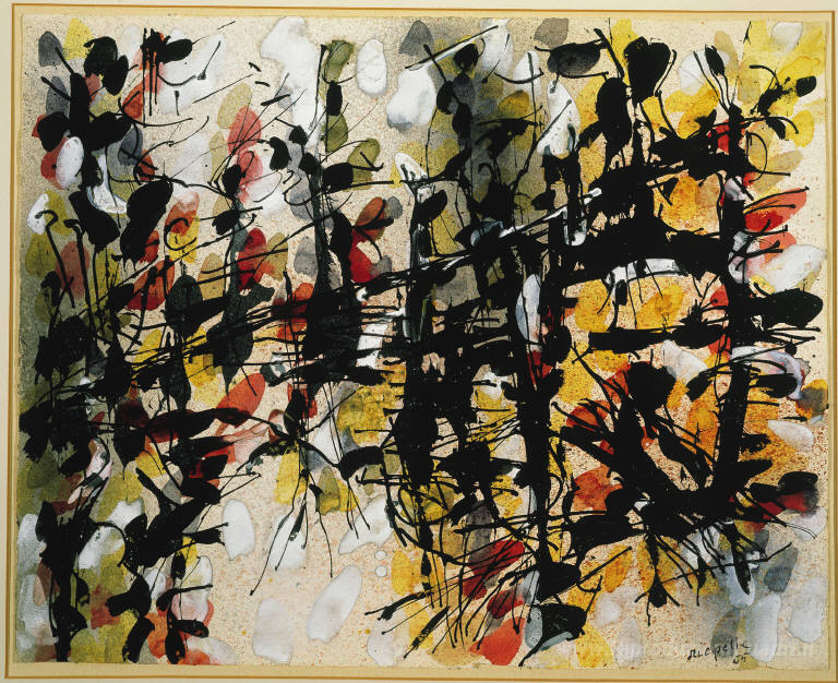 Ti offriamo una riproduzione artigianale su tela dell'opera famosa 'Senza titolo' di Jean-Paul Riopelle, dal Museo delle Riproduzioni.