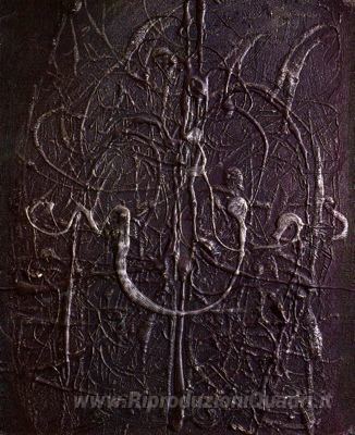 Ti offriamo una riproduzione artigianale su tela dell'opera famosa 'Senza titolo' di Modest Cuixart, dal Museo delle Riproduzioni.