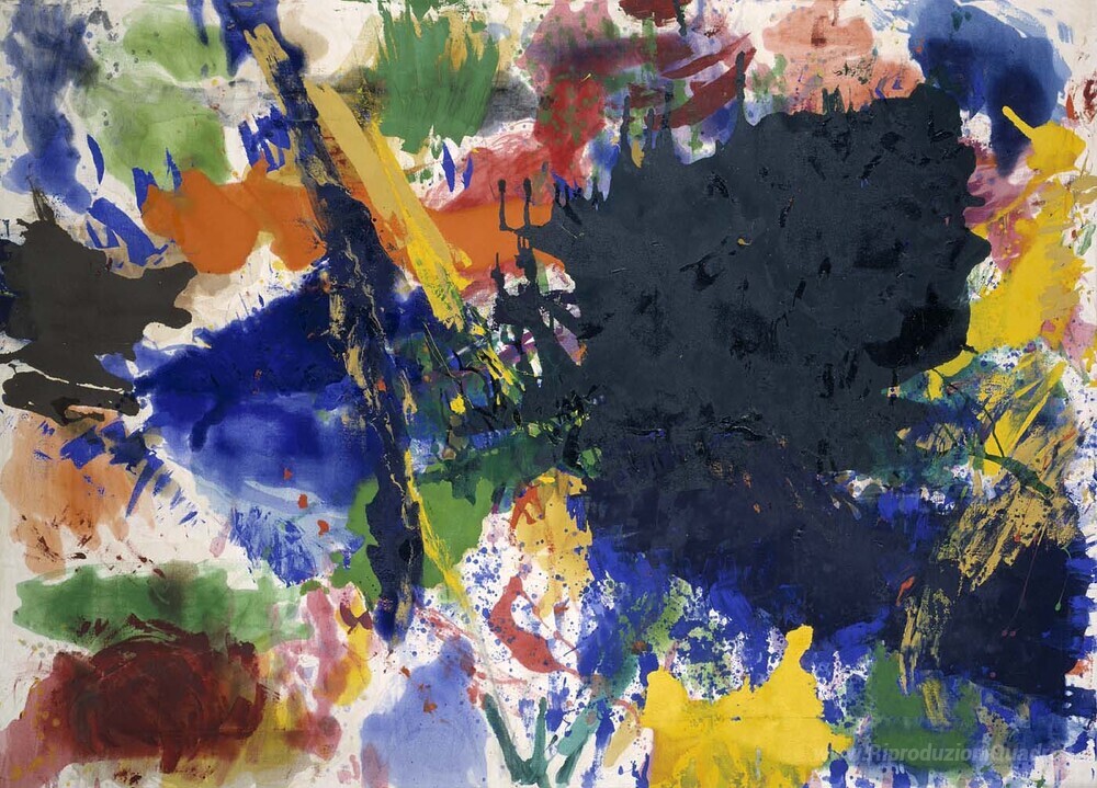 Ti offriamo una riproduzione artigianale su tela dell'opera famosa 'Senza titolo' di Morris Louis, dal Museo delle Riproduzioni.