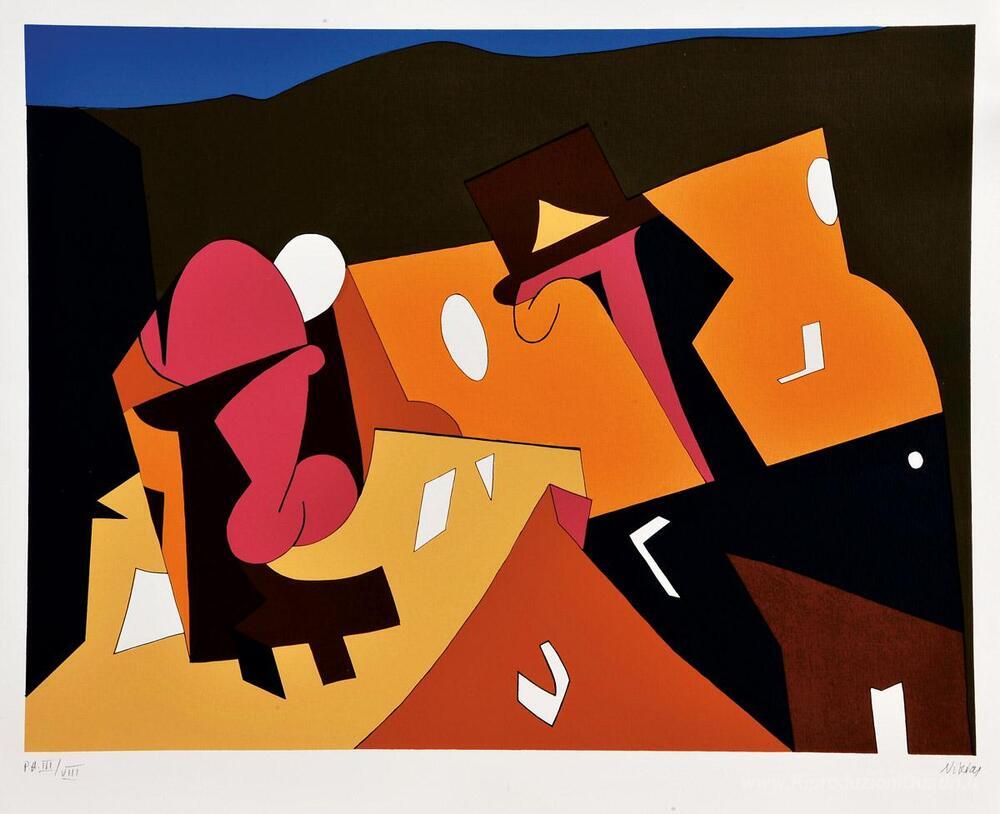 Ti offriamo una riproduzione artigianale su tela dell'opera famosa 'Senza titolo' di Nikias Skapinakis, dal Museo delle Riproduzioni.