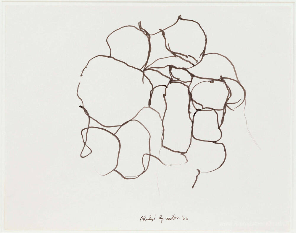 Ti offriamo una riproduzione artigianale su tela dell'opera famosa 'Senza titolo' di Philip Guston, dal Museo delle Riproduzioni.