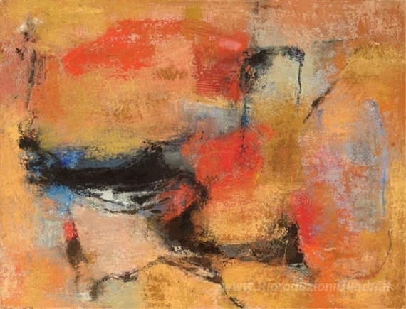 Ti offriamo una riproduzione artigianale su tela dell'opera famosa 'Sera Romana' di Giuseppe Santomaso, dal Museo delle Riproduzioni.