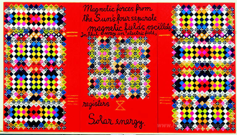 Ti offriamo una riproduzione artigianale su tela dell'opera famosa 'Solar Energy Ottica' di Alfred Jensen, dal Museo delle Riproduzioni.