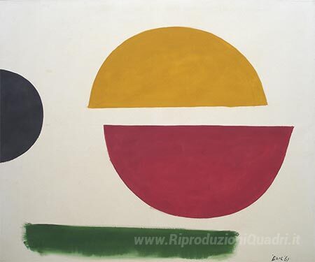 Ti offriamo una riproduzione artigianale su tela dell'opera famosa 'Split Circle # 3' di Jack Bush, dal Museo delle Riproduzioni.