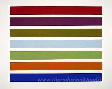 Ti offriamo una riproduzione artigianale su tela dell'opera famosa 'Stripes parete No. 3' di Gene Davis, dal Museo delle Riproduzioni.