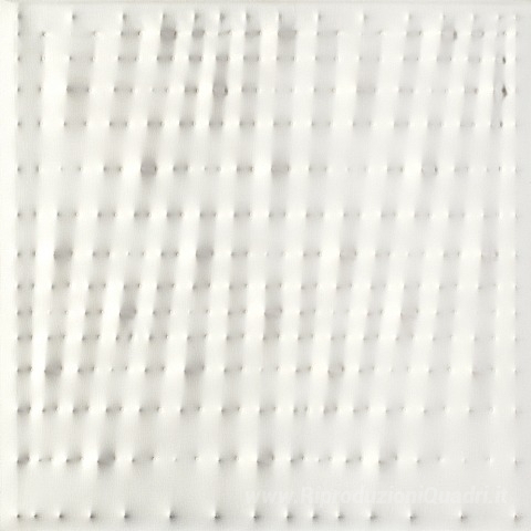 Ti offriamo una riproduzione artigianale su tela dell'opera famosa 'Superficie Bianca' di Enrico Castellani, dal Museo delle Riproduzioni.