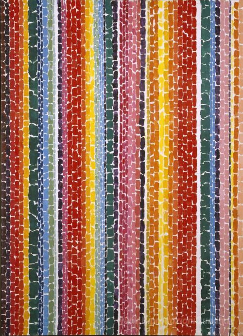 Ti offriamo una riproduzione artigianale su tela dell'opera famosa 'Terra Sermone, bellezza, amore e pace' di Alma Woodsey Thomas, dal Museo delle Riproduzioni.