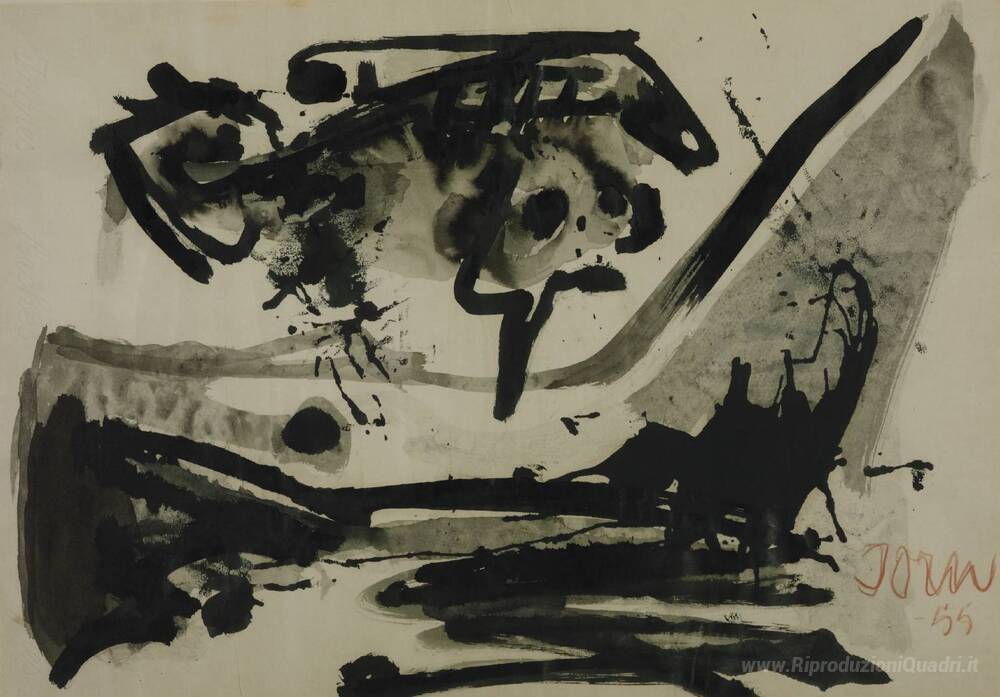Ti offriamo una riproduzione artigianale su tela dell'opera famosa 'The Black Flight' di Asger Jorn, dal Museo delle Riproduzioni.