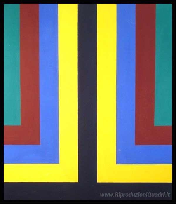 Ti offriamo una riproduzione artigianale su tela dell'opera famosa 'The Sound of Giallo e Blu' di Howard Mehring, dal Museo delle Riproduzioni.