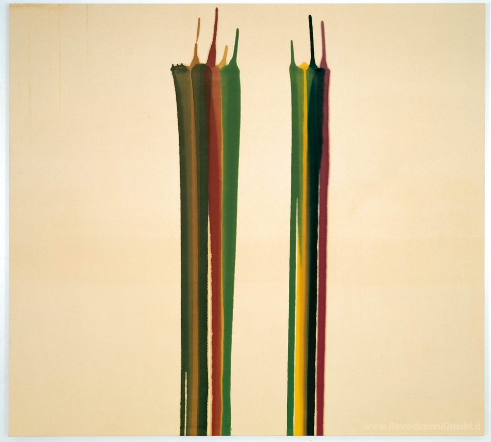 Ti offriamo una riproduzione artigianale su tela dell'opera famosa 'Titolo sconosciuto' di Morris Louis, dal Museo delle Riproduzioni.