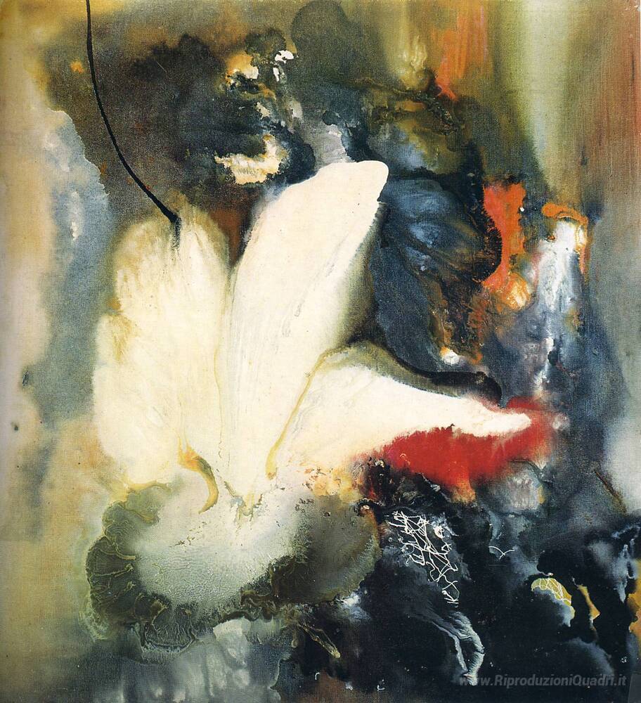 Ti offriamo una riproduzione artigianale su tela dell'opera famosa 'Titolo sconosciuto' di Paul Jenkins, dal Museo delle Riproduzioni.