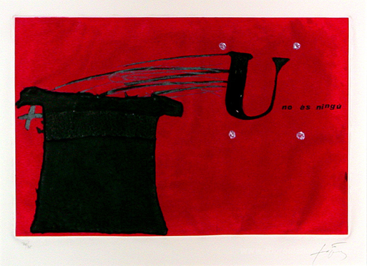 Ti offriamo una riproduzione artigianale su tela dell'opera famosa 'U no és ningú' di Antoni Tapies, dal Museo delle Riproduzioni.