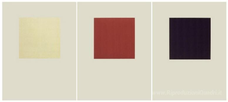 Ti offriamo una riproduzione artigianale su tela dell'opera famosa 'Untitled (Crema / Rosso / Nero)' di Phil Sims, dal Museo delle Riproduzioni.