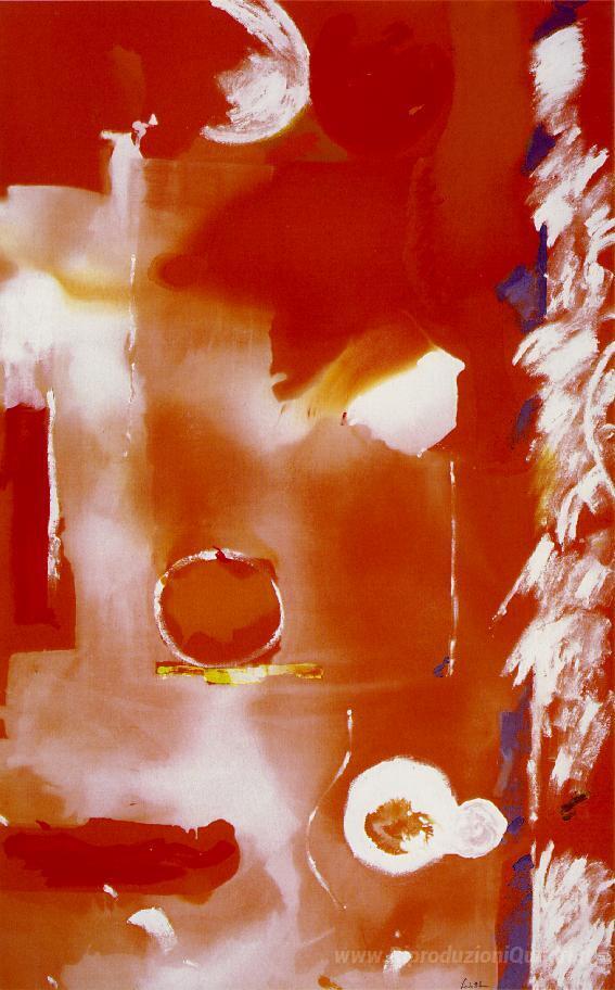 Ti offriamo una riproduzione artigianale su tela dell'opera famosa 'Vedendo la Luna in una calda giornata estiva' di Helen Frankenthaler, dal Museo delle Riproduzioni.
