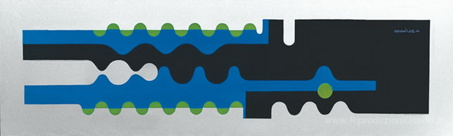 Ti offriamo una riproduzione artigianale su tela dell'opera famosa 'Verde-azul Orizzontale' di Ramirez Villamizar, dal Museo delle Riproduzioni.