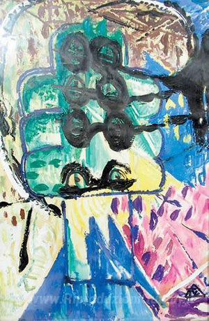 Ti offriamo una riproduzione artigianale su tela dell'opera famosa 'Viaggiare Occhi' di Ion Tuculescu, dal Museo delle Riproduzioni.