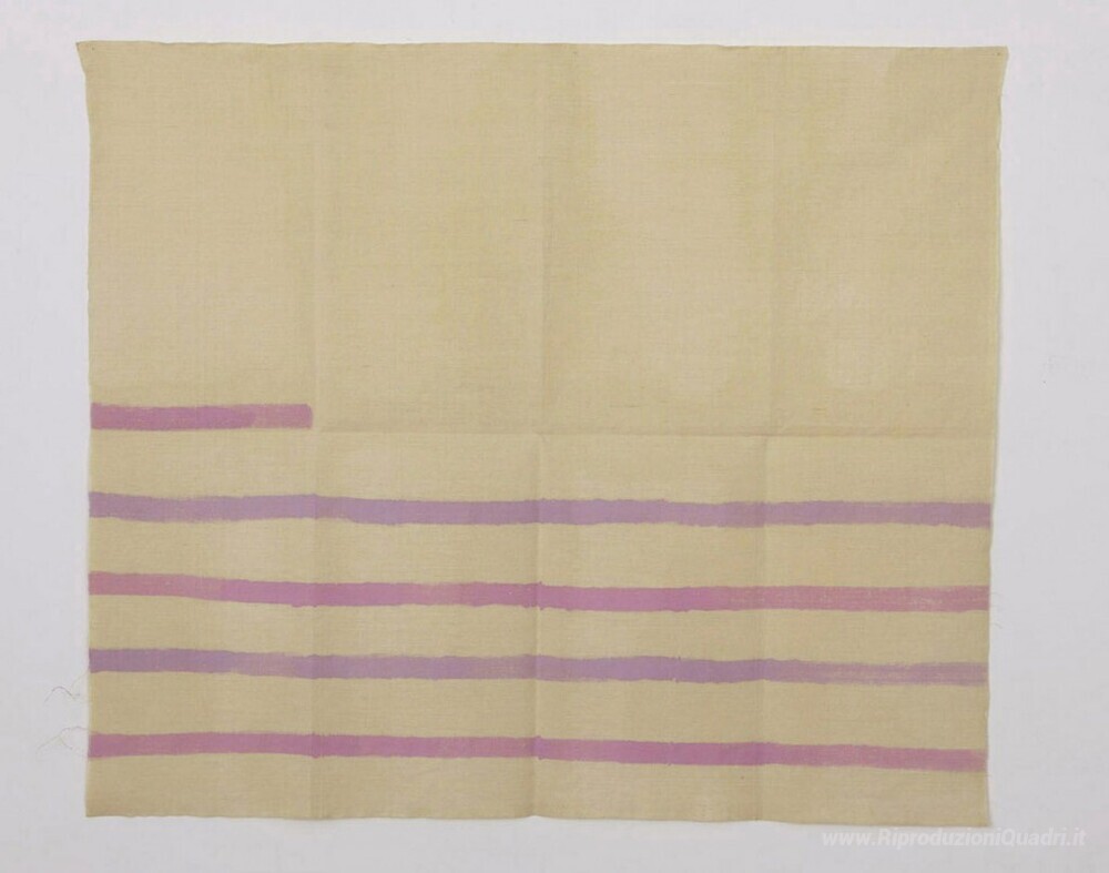 Ti offriamo una riproduzione artigianale su tela dell'opera famosa 'Viola e lilla Orizzontale' di Giorgio Griffa, dal Museo delle Riproduzioni.
