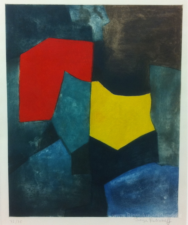 Ti offriamo una riproduzione artigianale su tela dell'opera famosa 'XVI' di Serge Poliakoff, dal Museo delle Riproduzioni.