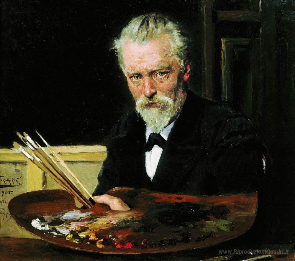 Ti offriamo una riproduzione artigianale su tela dell'opera famosa 'Auto ritratto' di Vladimir Makovsky, dal Museo delle Riproduzioni.