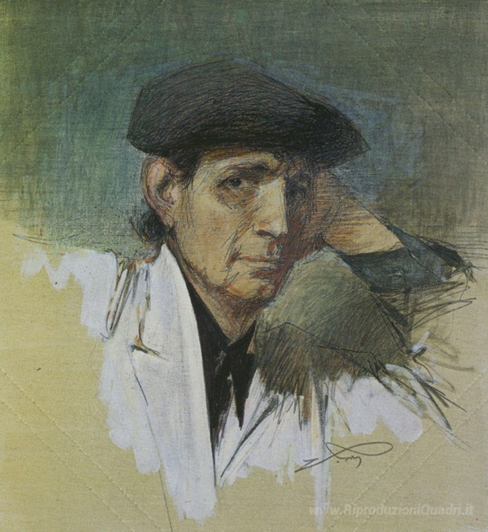 Ti offriamo una riproduzione artigianale su tela dell'opera famosa 'Auto ritratto' di Alekos Kontopoulos , dal Museo delle Riproduzioni.