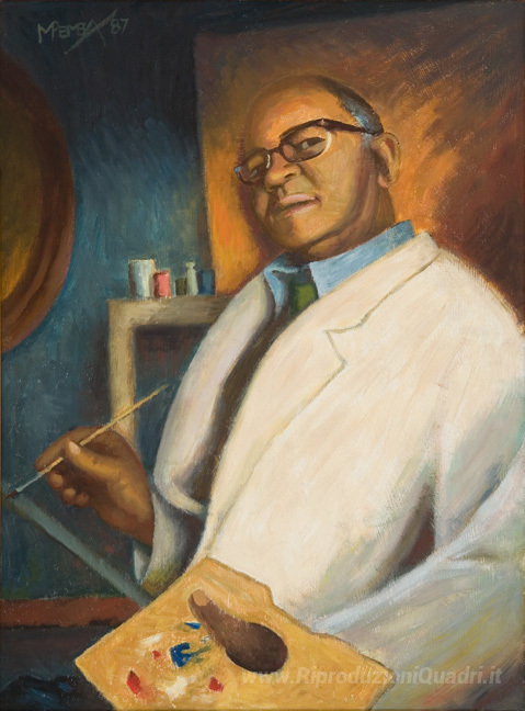 Ti offriamo una riproduzione artigianale su tela dell'opera famosa 'Auto ritratto' di George Pemba, dal Museo delle Riproduzioni.