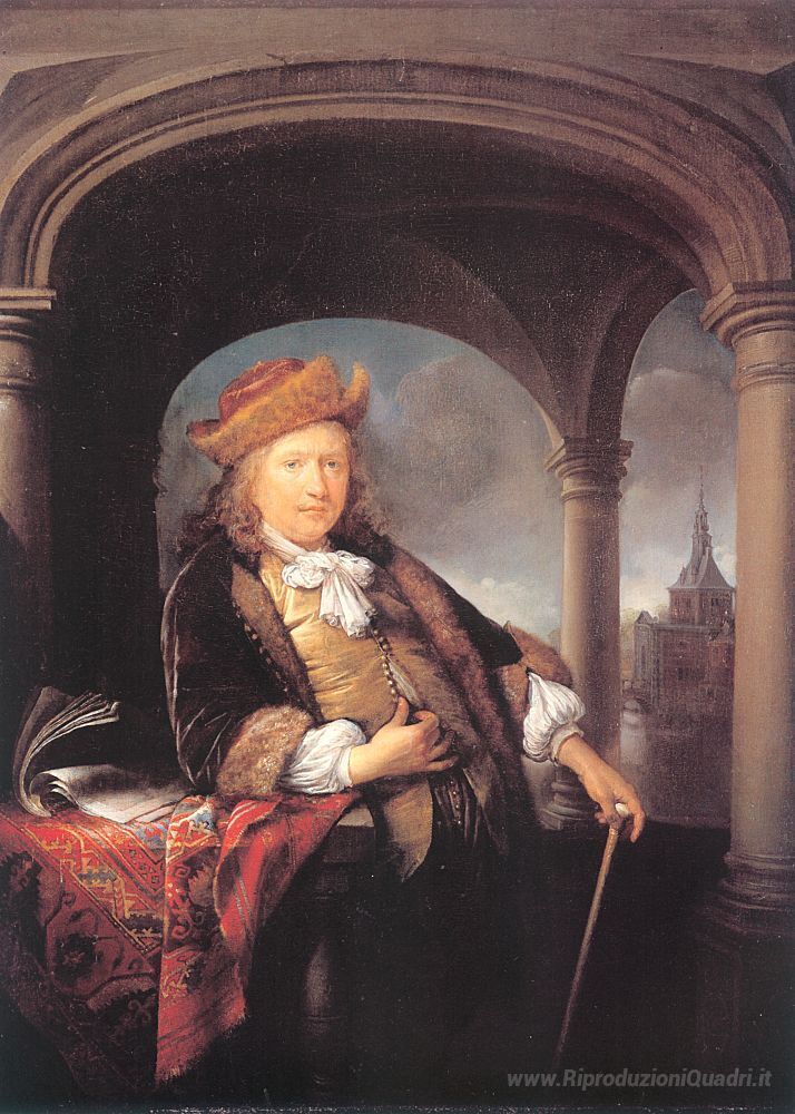 Ti offriamo una riproduzione artigianale su tela dell'opera famosa 'Auto ritratto' di Gerrit Dou, dal Museo delle Riproduzioni.