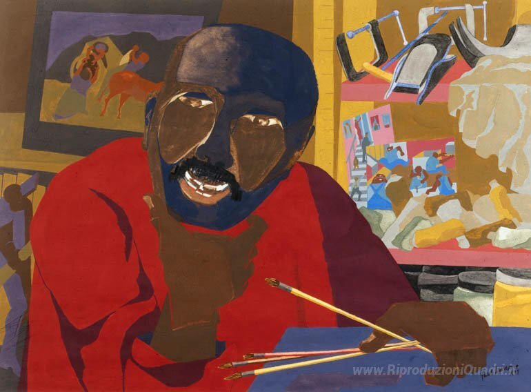Ti offriamo una riproduzione artigianale su tela dell'opera famosa 'Auto ritratto' di Jacob Lawrence, dal Museo delle Riproduzioni.
