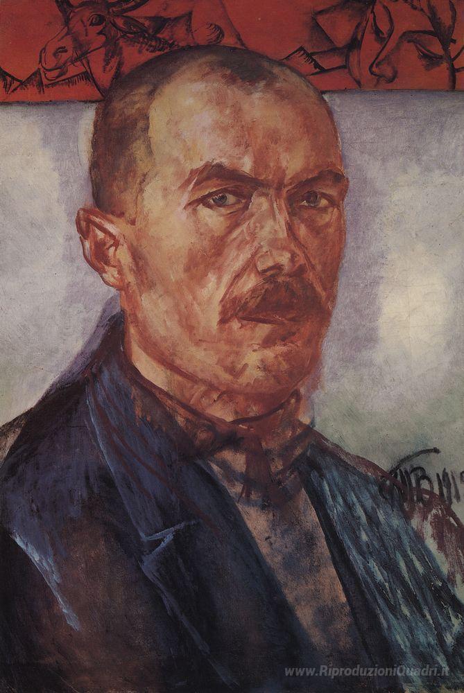 Ti offriamo una riproduzione artigianale su tela dell'opera famosa 'Auto ritratto' di Kuzma Petrov-Vodkin, dal Museo delle Riproduzioni.