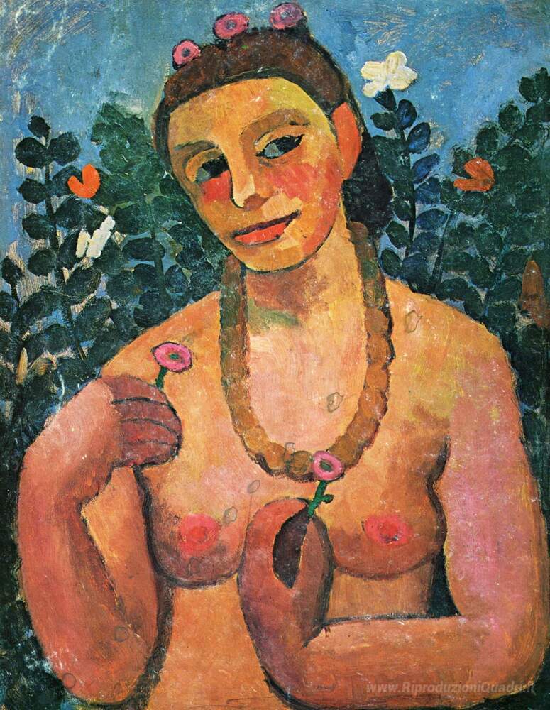 Ti offriamo una riproduzione artigianale su tela dell'opera famosa 'Auto ritratto' di Paula Modersohn-Becker, dal Museo delle Riproduzioni.