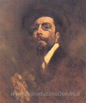 Ti offriamo una riproduzione artigianale su tela dell'opera famosa 'Auto-retrato' di Columbano Bordalo Pinheiro, dal Museo delle Riproduzioni.