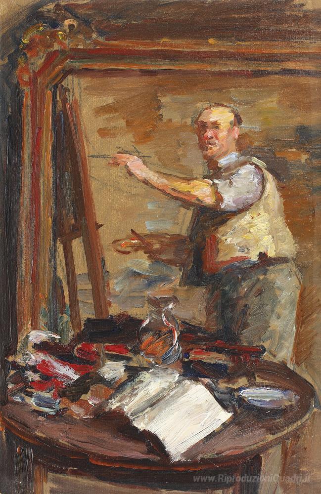 Ti offriamo una riproduzione artigianale su tela dell'opera famosa 'Autoritratto a cavalletto' di Samuel Mutzner, dal Museo delle Riproduzioni.