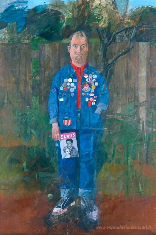 Ti offriamo una riproduzione artigianale su tela dell'opera famosa 'Autoritratto con Badges' di Peter Blake, dal Museo delle Riproduzioni.