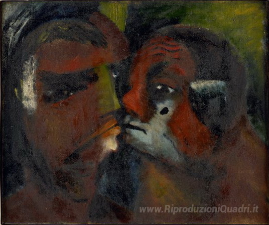 Ti offriamo una riproduzione artigianale su tela dell'opera famosa 'Autoritratto con la signora Papazoff' di Georges Papazoff, dal Museo delle Riproduzioni.