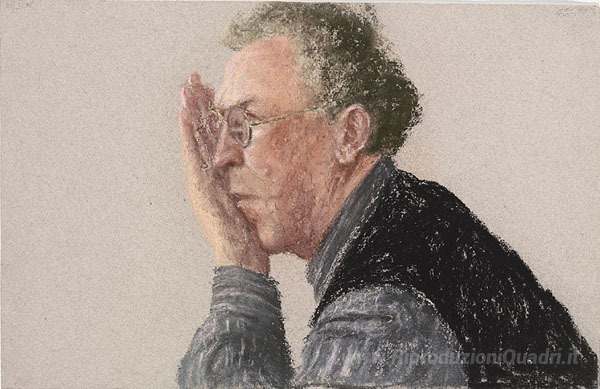 Ti offriamo una riproduzione artigianale su tela dell'opera famosa 'Autoritratto con mano' di Avigdor Arikha, dal Museo delle Riproduzioni.