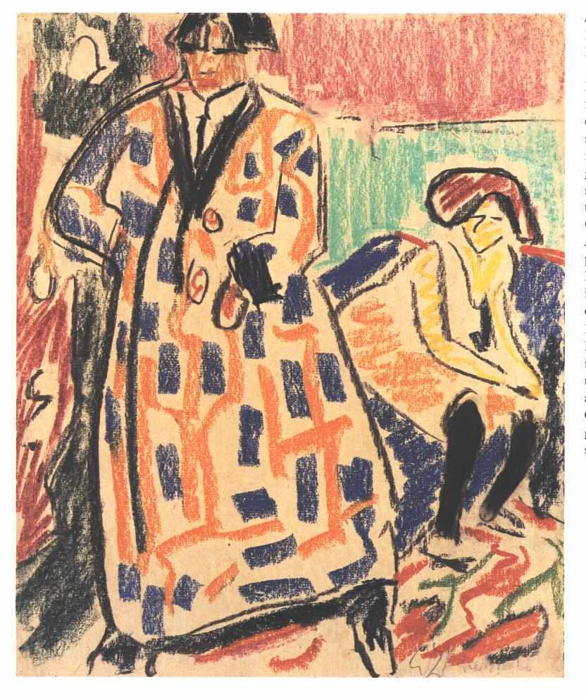 Ti offriamo una riproduzione artigianale su tela dell'opera famosa 'Autoritratto con Modello' di Ernst Ludwig Kirchner, dal Museo delle Riproduzioni.