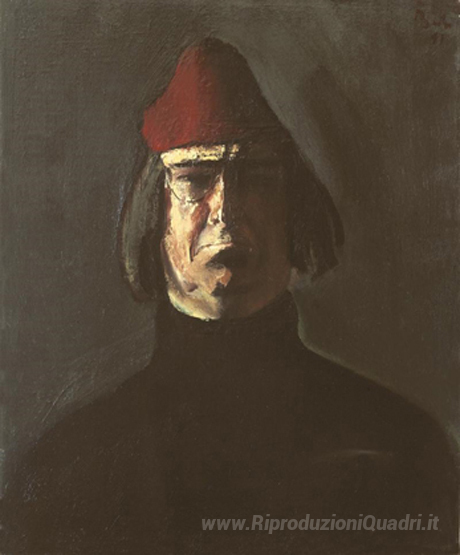 Ti offriamo una riproduzione artigianale su tela dell'opera famosa 'Autoritratto con Red Fez' di Corneliu Baba, dal Museo delle Riproduzioni.