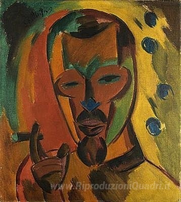 Ti offriamo una riproduzione artigianale su tela dell'opera famosa 'Autoritratto con sigaro' di Karl Schmidt-Rottluff, dal Museo delle Riproduzioni.
